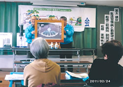 午前は矢嶋嶺先生(矢嶋診療所所長)が「健康に生きて、満足に死ぬ」というテーマで講演。大震災の折ということもあり、「後ろを振り返らず、今日を一生 懸命生きることが、満足に死ぬことにつながる」とのお話が胸にしみました。ユーモアのなかに生きる真実が感じられる講演で、元気をもらいました。
