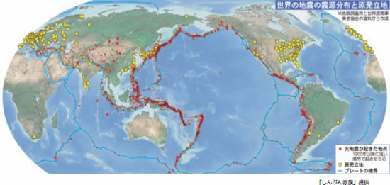 そもそも、地震多発地帯に原発をつくらないことが大原則です。アメリカは原発大国ですが、地震多発帯の西側には原発はほとんどなく、中部から東部の活断層のないところにつくられています。地震地帯に原発があるのは日本だけです。