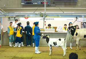 六月二九日、福島県本宮市にある福島県家畜市場で、乳牛の競りがおこなわれた。福島原発事故の放射能汚染により指定された「計画的避難地域」の酪農家が、同県白河などの牧場に避難させた子牛や育成乳牛だ。