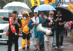 ことしも七月一八日、平和行進が西大寺にやってきました。