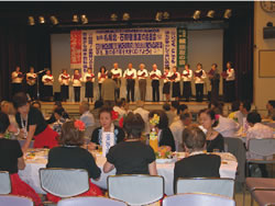 毎月開くお食事会のときに、「始まる前に歌でもあったらいいね」と出た一言がきっかけでした。当友の会の新聞「北斗星」で歌を募集し、遠藤明子さんが作 詞、瀬川悟郎さんが作曲を担当して完成。 当日はコーラスサークル「青い鳥」が合唱しました。数え歌になっていて、「ホイ」という掛け声も調子よく、みん なで楽しく歌えそうです。