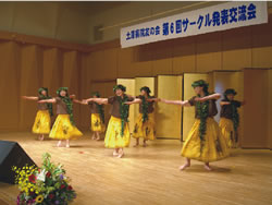 展示ホールでは、写真、書道、水彩画の作品や、リフォーム、山歩きの会などの活動紹介が展示されました。小ホールでは大正琴、カラオケや、新舞踊、フラダンス、気功などがそれぞれ披露されました。