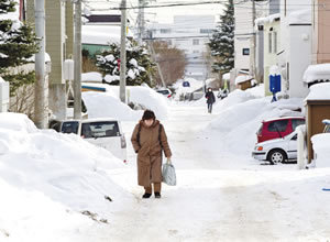 | 真冬の札幌市。介護を受けていない人でも足もとは要注意だ(白石区で) |