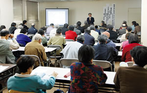 福島と同じく、原発がある静岡県。浜北医療生協は「浜岡原発の永久停止と廃炉を求める署名」にもとりくんでいます。二月一一日、「浜岡原発はいらない浜 北の会」と浜北医療生協の共催で野菜便の送り先、福島・郡山医療生協の坪井正夫院長(桑野協立病院)と鹿又達治さん(同病院放射線技師)を招いて学習会を 開きました。