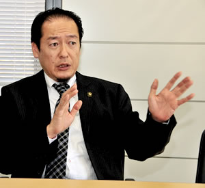 | 「原発ではなく、人間が人権を取りもどすたたかいを」と話す坪井院長 |
