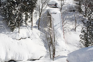 二月一九日、三メートルを超える豪雪の栄村で出会った男性は、「(雪は)もういらねえよ」と崩落した中条橋を指さしながら語った。通行止めの中条橋は、 雪の重さに耐えられなくなり崩落。この橋は村民の便を図って村が独自に架けた。国の査定は「橋は二本でいい。中条橋はいらない」としたが「村人の墓参りに 必要なんだ」と島田茂樹村長が要請し、査定を通ったという。