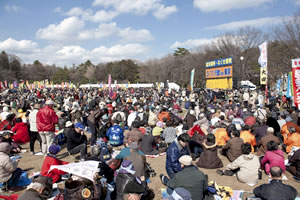 | 井の頭公園に集まった8000人の参加者。曇り空だったが、開会直前に晴れ間が |