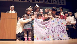 | さよなら原発の願いを胸に登壇した子どもたち |