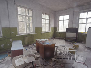 三〇キロ圏内を管理する国営企業チェルノブイリインターインフォームの案内所で、汚染の概況についての説明を受け、放射線管理区域に入る際には全員が署 名をさせられました。内容はベリー類(果実)やキノコの採取、植物や土、建物に直接触ることを禁じるものでした。さらに見学後に被ばく線量を測定すること が義務付けてあり、「健康被害が出ても自己責任」と記されていました。