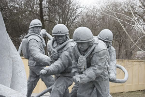 | 消防士の像。放射線のことを知らされず無防備のままに初期消火にあたり、急性放射線障害で2週間以内に亡くなった28人の消防士の活動を讃えている |