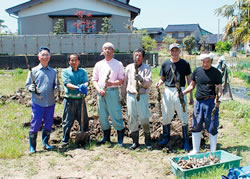 恒例の「まて貝掘り」に行ってきました。二六人乗りのマイクロバスで、約一時間半かけて香川の琴弾(ことひき)海岸へ。“まて貝”だけに待ちの姿勢の 人、大きなクワで大猟をねらう人など、採り方に個性が出ます。二時間で一〇~一〇〇匹と成果もさまざま。