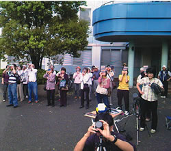 太平洋側の広範囲で見られるのは一七三年ぶりで、次回は三〇〇年後と言われています。近隣在住の会員や看護学生ら約四〇人が集まり、奇跡の天体ショーを 観察しました。安全第一に“日食めがね”を使用して、“金環”がはじまった七時三二分には、感激の歓声とともに拍手がわき起こりました。