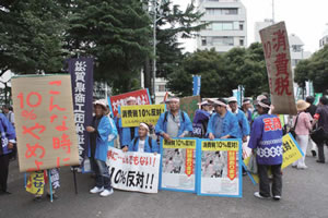 | 増税に抗議する人たち(6月23日、都内で。写真・前沢淑子) |