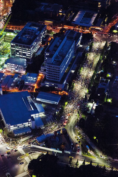 ツイッターやフェイスブックなどの呼びかけで、4月からはじまった大飯原発再稼働反対の首相官 邸前抗議行動(首都圏反原発連合主催)は、週を追うごとに参加者が増え続けた。当初300人だった参加者は、6月29日、7月6日と2週続けて15万人以 上が参加するまでにふくれあがった。7月29日、日曜日にも国会包囲行動がとりくまれ、20万人が集まった。野田政権は再稼働を強行したが、これ以上国民 の声を無視し続けられるのだろうか。