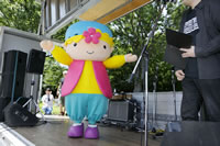 このほか、代々木野外音楽堂(第二ステージ)や、トラックを使った路上ステージも。バンド演奏や原発事故被災者の訴え、原発問題をわかりやすく告発する 「もんじゅくん」らのトーク、原発推進者を揶揄した「絶対原子力戦隊スイシンジャー」の寸劇なども披露されました。