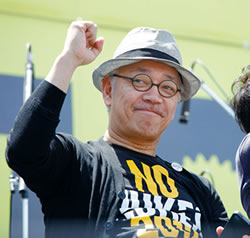 第二ステージではロックバンド「XJAPAN」「LUNA SEA」のギタリストSUGIZOさんも登場。「国民の総意を無視した状態でつきすすんでいる政治のあり方を変えることが大事。真の革命を日本で起こしましょう」と呼びかけ、参加者の盛んな拍手を受けました。