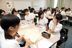 「人間はね、病気になったり年をとったりすると、人手を借りないと生活できなくなります。みんな一人では生きていけなくなるし、人手を借りることは当た り前のことです。でもね、人に世話になることには、誰しも抵抗があります。みなさんには患者さんの立場に立って、患者さんの自尊心や気持ちを大切にする看 護師さんになってほしい。その人がどんな生活をしているか、退院した後にどのような家で生活するか、仕事や家族のことも含めてよく知ろうとすることが大事 です。ぜひ看護師さんになって、ここで働いてくれたらうれしいなあ」