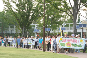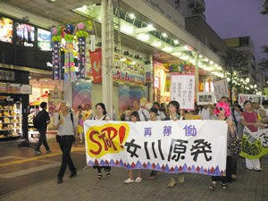東京・代々木公園でおこなわれた「七・一六さようなら原発一〇万人集会」から帰って、「倉敷で も、脱原発のアクションをやりたいね」と、私が職場でつぶやいたのがきっかけでした。またたく間に広がり、フェイスブックなどで告知した七月二七日夕方に は、倉敷駅近くの公園に一五〇人もの方々が集まりました。