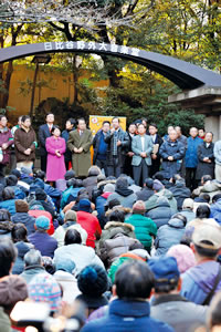 | 派遣村に当時の野党代表が勢揃い。民主党・菅代表代行(当時)の姿も(2009年1月4日、日比谷公園) |