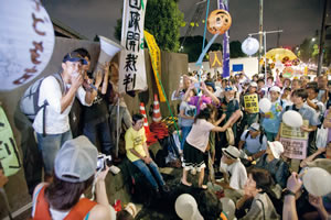 | 山本太郎さんは「ふくしま集団疎開裁判で、福島の子どもたちの生きる権利を獲得しなければ」と訴えた(9月21日の脱原発・首相官邸前抗議行動で) |