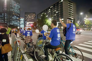 | 毎週金曜日の首相官邸前に自転車で駆けつけている東京・健友会のメンバーたち |