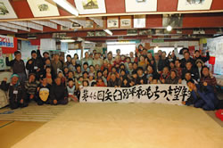 最後は、矢臼別に住む浦舟三郎さんが杵を握りました。周りからの「ヨイショッ!」のかけ声と三味線の小気味よい音色に合わせて、餅をつきあげました。