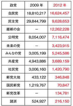 自民党が二九四議席、公明党が三一議席を得ましたが、大事なことは、自民・公明の合計で前回の〇九年選挙に比べて三一三万も得票を減らしているというこ とです。自民「圧勝」というのは事実をねじまげた表現で、私は使うべきではないと思っています。