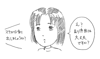 「家族と同じような症状だから」と言って、自分の判断で薬を使わず、皮膚に気になる症状が現れたら、皮膚科を受診しましょう。ステロイド剤に限ったこと ではありませんが、必要以上に薬の副作用を怖がらず、不安があれば医師や薬剤師に相談してください。