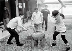 当医療生協では、毎年12月に組合員と職員がいっしょに餅つきをします。しかし、組合員の高齢化によって、年々杵を持つ人が少なくなってきました。