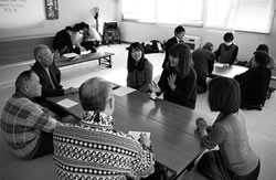 まず、「孫世代の人たちとどんなことをしたいか」というテーマで、グループごとに話しあいます。「キャンプに行きたい」「盆踊りや七夕を楽しみたい」などと話が弾みます。
