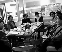 まずは金町診療所の待合室を借りて、月一回の「お茶のみ会」を始めました。五回目となった二月二三日には、一三人の方が参加してくださいました。
