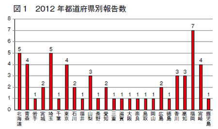 今回の調査では二〇一二年一~一二月の一年間に、二五都道府県から五八人(図1・2)の事例が報告されました。同調査は今回で七回目になります。