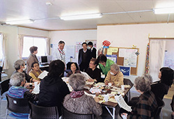 4月4日、塩釜市の仮設住宅で健康相談会を実施しました。12回目とあって知り合いもでき、健康相談のほか、生活についての情報も交換しました。集会所に来られない方には、訪問もおこないました。