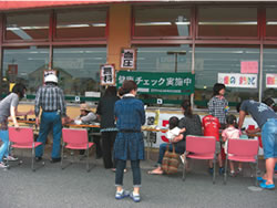 六月九日、徳島市内のコープ店舗前で、「歯のまちかど健康チェック」をおこないました。歯科職員一二人と組合員利用委員四人、健康づくり事業部の職員二人の合計一八人が参加しました。