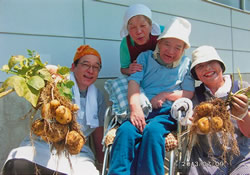 トマトやキュウリ、ジャガイモなどのあとは、大根や白菜の収獲が待っています。入所者の方々が喜ぶ顔を励みに、ボランティアたちは汗を流しています。