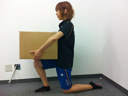 四つんばいの状態から、片方の手を前に、反対側の足を後ろに伸ばします。背中は反らないように、なるべくまっすぐにします。先ほどのドローイン同様、お なかを引っ込めた状態で30秒キープ、終わったら、反対の手を前に逆の足を後ろに伸ばして同じように30秒キープします。姿勢を保つ時間は、最初は3~5 秒程度から始めてもいいでしょう。慣れてくれば、左右交互に3セットおこないましょう。