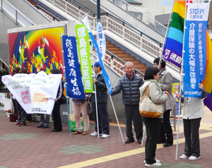 一一月一一日の「いい介護の日」に、徳島駅前で宣伝・署名活動をおこないました。