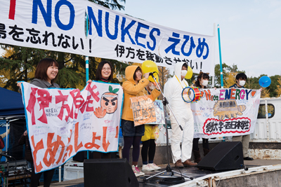 一二月一日、愛媛県松山市で「NO NUKES えひめ 福島を忘れない! 伊方を稼働させない!」(「伊方原発をとめる会」主催)が開催され、全国から約八〇〇〇人が集いました。