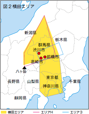 同様の米軍機訓練がおこなわれている場所がもう一つある。群馬県の前橋市・渋川市・高崎市など、県中央部に広がる自衛隊高高度訓練空域「H」、低高度訓 練空域「エリア3」だ。ここも米軍横田基地が管制する広大な「横田進入管制空域」(横田エリア・図2=同じく黄色)に重なっている。