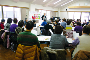 手あそびを取り入れたり、職員に健康についての話をしてもらったり、さまざまな趣向もこらしています。今後も地域の憩いの場としてとりくみを広げていきたいと思います。