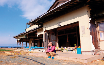 荒涼とした大地を海からの風が吹きぬける。南相馬市原町区萱浜は、震災による津波で壊滅的な被害を受けた。ほとんどすべてが押し流された中で、たった一軒の家だけが今も辛うじて原形をとどめている。軒先には、おもちゃや折り紙の鶴が供えられていた。