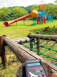 「公園にある木製の遊具に放射線計測器を近づけると、数値が見る見るうちに上昇していきます。二本松市や郡山市では表面の線量がガンマ・ベータ線の合算 で五~一〇マイクロシーベルト(毎時)超という木製遊具もありました(注)。公園自体は除染されていても、遊具が除染されないまま、というケースは多々あります」