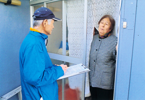 民間住宅に避難している方々に対しても、コメや餅などを届けながらお話をうかがいました。「公営住宅の申し込みをしているが、入居できるか心配」「医療 費の減免がなくなり、病院に行けない」など、深刻な悩みが語られます。医療費の減免は、四月に条件付きで復活するようですが、まだまだ被災者に対する支援 が必要です。