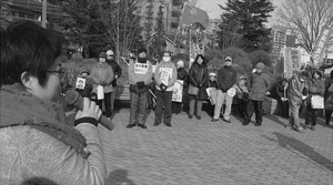 集会に先立つ宣伝・署名行動には二二人が参加。わずか一時間で一七〇人分の署名が集まりました。