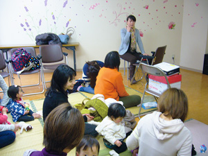 一〇人のママたちが参加し、「しっかり保湿することが大切だとわかった」「自分が昔アトピーだったので心配だったが、必ずしも遺伝ではないとわかって安 心した」「子どもをあずかっていただいたので、集中して聞くことができた」などの感想が寄せられました。