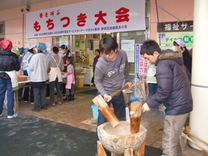 三月二日、あすと長町仮設住宅で三回目となる「もちつき・たこあげ大会」を開催しました。