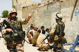 | バグダッドでの「テロ掃討」。米軍は令状もなく一般市民を次々に拘束していた(2004年) |
