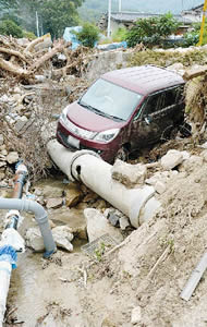 | 土砂災害の爪痕が生々しい(八木地区) |