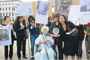 「ベルリン・女の会」は、外国人男性と日本人女性の間に生まれた子どもが日本国籍を持てない不 条理さに対し、日本の国籍法を学びあうなかで三二年前に生まれました。同じように外国で暮らす女性の立場から、看護師として働きに来ていた韓国の人々とも 交流を持つようになり、「慰安婦」問題を日韓共通の課題としてとらえるようになったのです。最初は韓国の人たちの行動に参加しましたが、やがて共同で開催 するようになり、昨年からは自分たちで主体的に行動しようと計画を立て、ドイツの団体にも参加を呼びかけました。