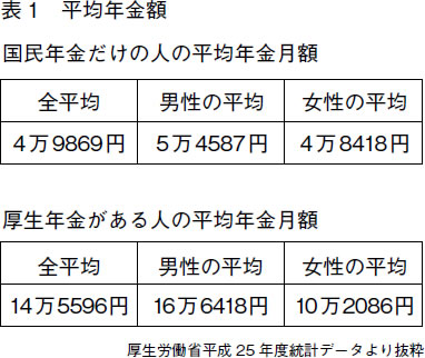国がおこなっている国民生活基礎調査によれば、「老後の生活費は公的年金が頼りだ」と回答した人がなんと80%を超えています。「公的年金は老後の所得保障の命綱」になっているのです。すでに年金をもらっている方々の平均年金額を参考にしてみましょう(表1)。